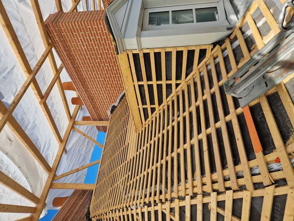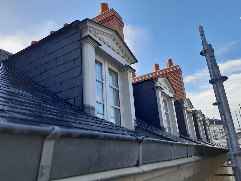 Les lucarnes présentes sur la toiture, qu’on ne voit pas depuis la place Sainte-Croix, présentent des éléments particulièrement intéressants pour l’histoire de l’édifice. Leur menuiserie est en effet le témoin des savoir-faire du 19e siècle et ses caractéristiques doivent être respectées : un cadre en bois discret ou encore des vantaux à trois carreaux. Les lucarnes présentent également un soin particulier dans leur décor : un fronton en bois peint en blanc couronne le tout. La restauration actuelle doit ainsi permettre aux lucarnes de retrouver leur état d’origine, en remplaçant les fenêtres en PVC qui avaient été posées (une obligation afin de disposer de la subvention).