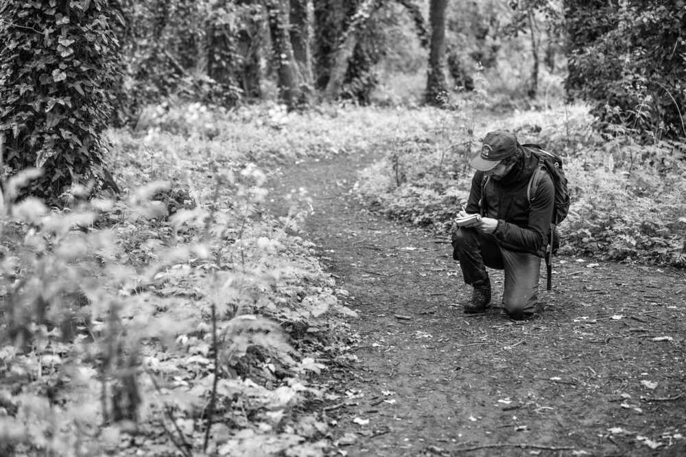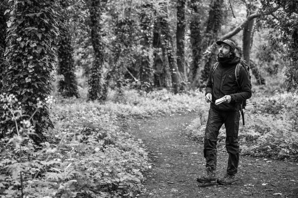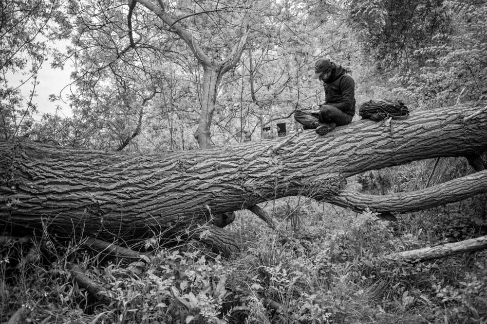 Pour mieux comprendre cet écosystème, il a installé un bivouac dans un arbre et a pris des notes sur son expérience. Il a ainsi observé les espèces animales qui peuplent le parc, parfois difficiles à observer : des rongeurs, des lapins, mais surtout de nombreuses espèces d’oiseaux, dont la présence se matérialise notamment par les sons. Se dessine alors un paysage sonore du parc permettant de mieux comprendre les interactions entre les sons des non-humains et la rumeur de la ville.