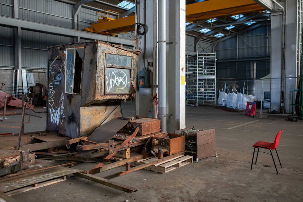 Ces « colis » sont grenaillés afin de créer une rugosité qui permettra ensuite à la peinture d'adhérer. Certains éléments désamiantés ont déjà reçu une couche de peinture anti-corrosion, prévue pour résister à des conditions climatiques extrêmes. Cette première couche est rouge, mais ne soyez pas surpris, la couleur finale de la grue sera bien le noir, et sa nuance très spécifique (RAL 9017) a déjà été validée par le service des Monuments Historiques. Ce choix est le fruit d’études et d’analyses approfondies des peintures existantes ayant permis de retrouver les couleurs initiales de la grue.