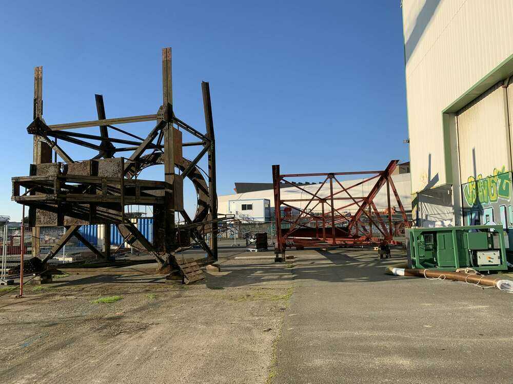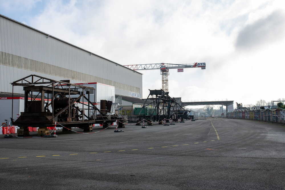 Concernant le désamiantage, c’est actuellement la pièce la plus haute de la grue, le haut de flèche, qui est en traitement, avant de laisser la place aux pieds et à un bogie, l’un des chariots roulants de la grue.