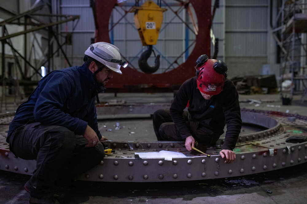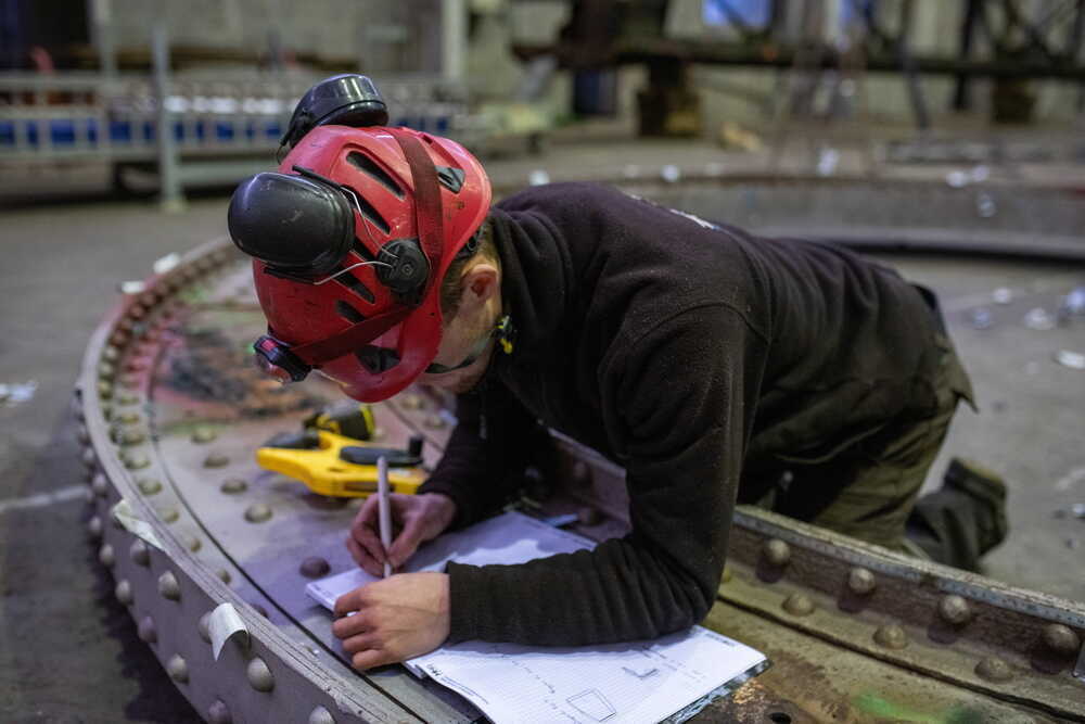 La durée des travaux a été allongée afin de permettre des travaux de recherche garantissant la conservation de plus de 100 équipements d’intérêt historique et patrimonial. L’objectif n’est pas de remettre la grue en fonction, mais bien de protéger et mettre en sécurité certains éléments, sans pour autant dénaturer leur forme spécifique. Des pièces métalliques cintrées abîmées ont par exemple été démontées, réparées puis remises en place sur le haut du fût. Si le devenir de certains équipements reste à décider, la cabine de grutier en tôle, attaquée par la corrosion, et servant autrefois aux manœuvres, a été reconstituée à l’identique grâce à un grand travail de précision des équipes sur site.