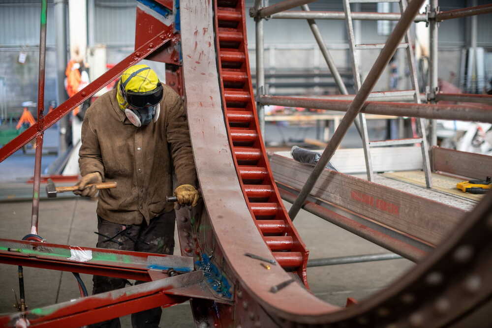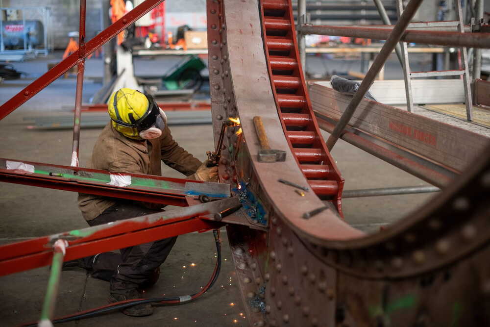 Après la fin des travaux de mise en peinture et de renforcement métallique, il sera temps de remonter la grue noire, une étape prévue au deuxième semestre 2023.