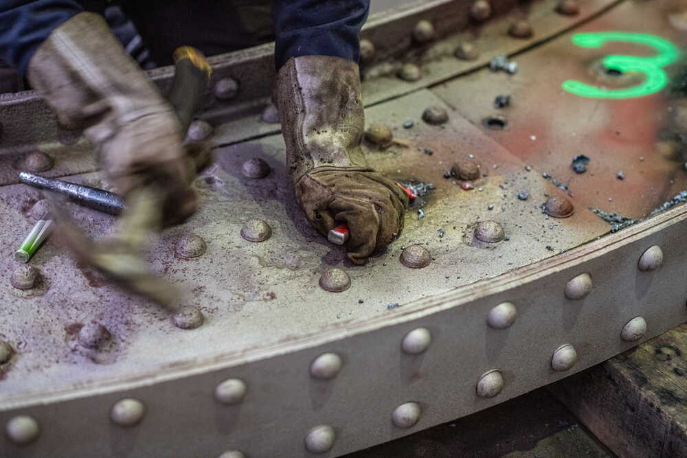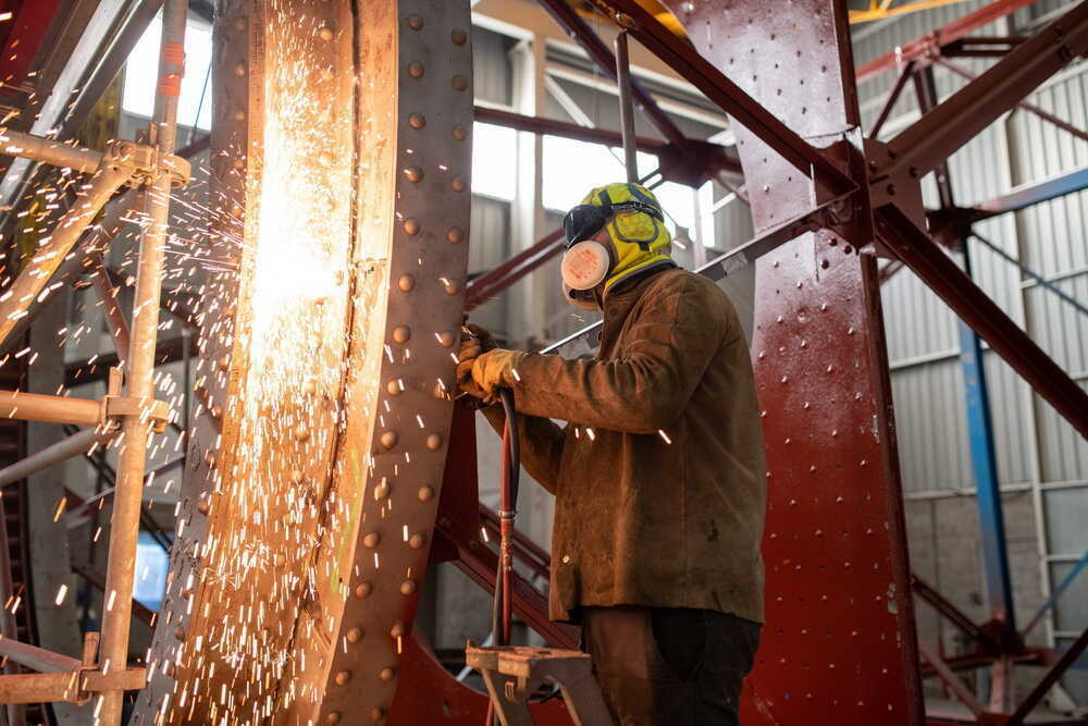 Le chantier de restauration de la grue noire se poursuit, faisant appel à un ensemble de compétences rares. Parmi elles, le traitement d’une charpente par décapage à l’abrasif sec en présence de plomb et d’amiante, ainsi que la réparation et le renforcement métalliques avec rivetage à chaud. Deux missions confiées respectivement aux entreprises Lassarat et Manang.