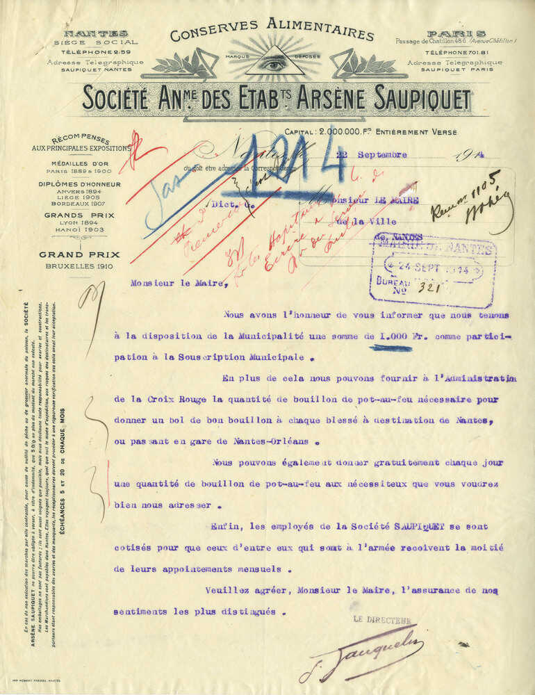 Le 27 février 1901, des ordres d’un administrateur délégué, Puget, sont contredits par Saupiquet fils. Ce qui donne lieu, quelques jours après, à une violente altercation et des injures entre Puget et Saupiquet père devant le personnel ! Le 9 mars 1901, ce dernier démissionne.