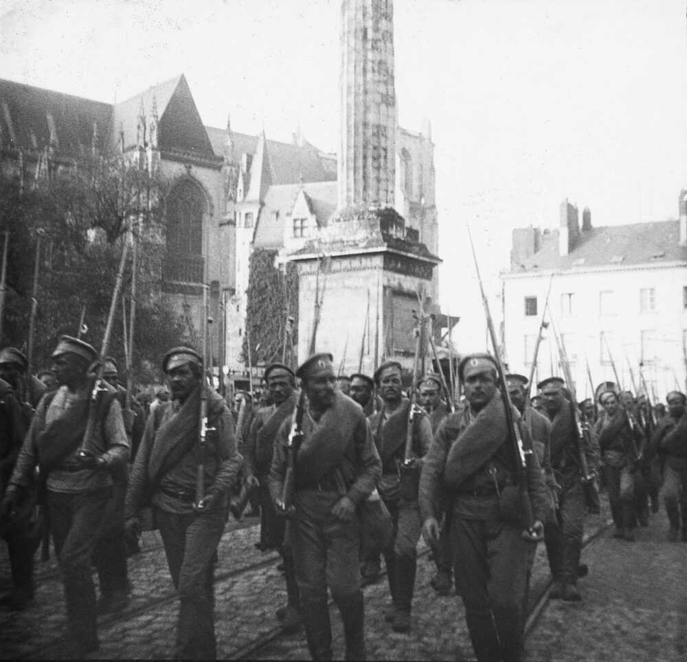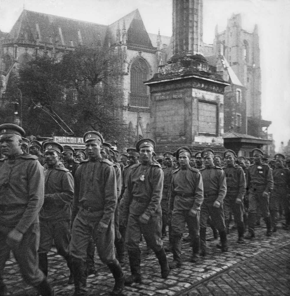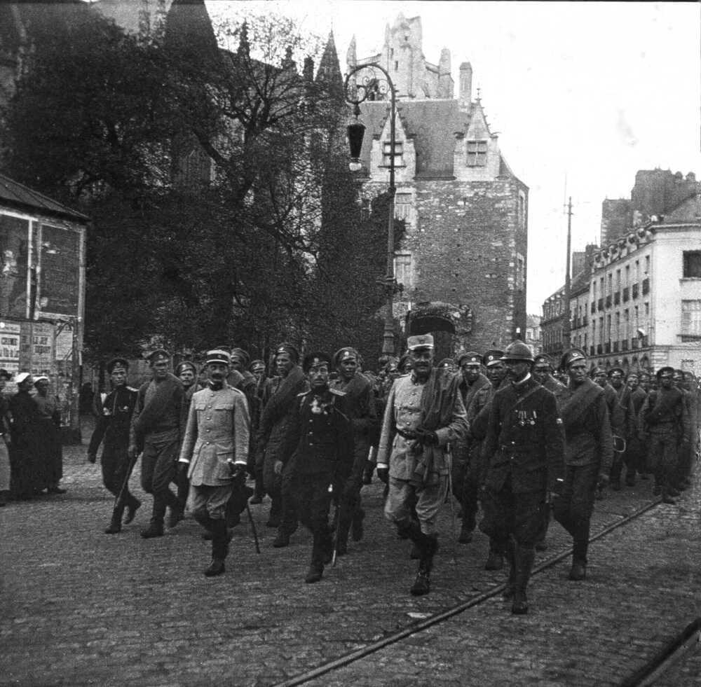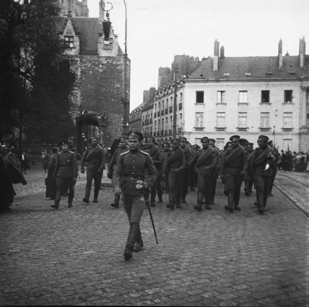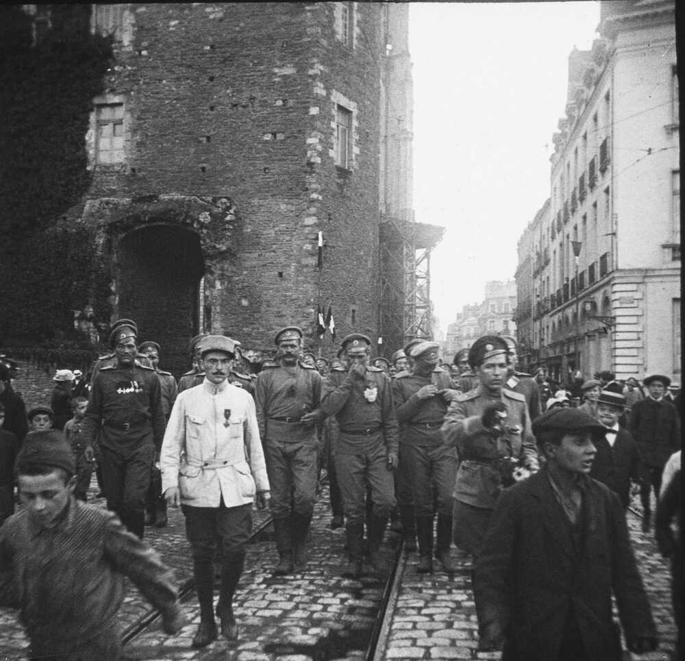 Le 26 août 1916, 3000 Russes défilent en arme dans les rues de Nantes, au pied de la cathédrale. Suite à un accord passé entre Paul Doumer, alors membre de la commission de l’Armée au Sénat, et le tsar Nicolas II, ces soldats viennent prêter main forte aux troupes de l’Alliance sur le front.