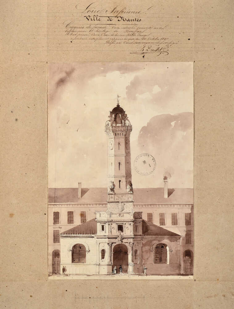 Erection d'un beffroi municipal sur la façade de l'église Sainte-Croix