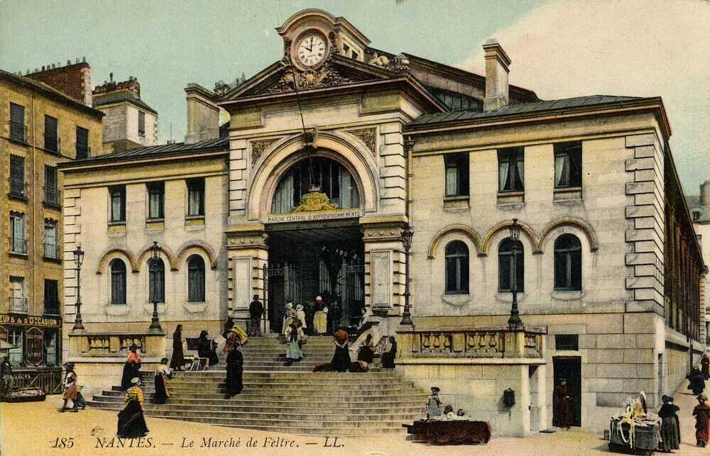 À la suite de l’inauguration du nouveau musée des Beaux-Arts le 19 janvier 1900, la halle de Feltre, trop petite et dans un état jugé déplorable, est rasée en 1902 et remplacée par un marché couvert. Conçue par Alfred Marchand, le nouvel édifice reconstruit in situ est une halle de 61 mètres de long sur 24 mètres de large, à ossature et charpente métalliques, sur un soubassement en pierre. Elle comprend quatre niveaux disposés sur un terrain en dénivelé : un niveau d’entresol donnant en contrebas sur la rue de l’Arche-Sèche, et, donnant sur la terrasse supérieure de la place Bretagne et sur la rue de Feltre : un sous-sol et deux niveaux supérieurs.