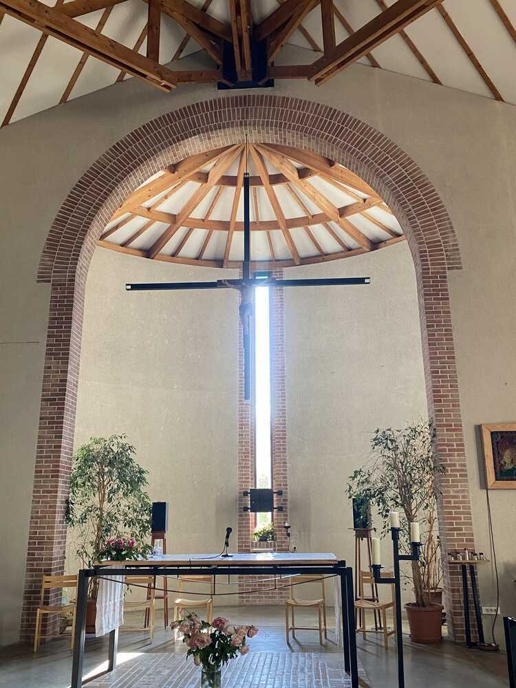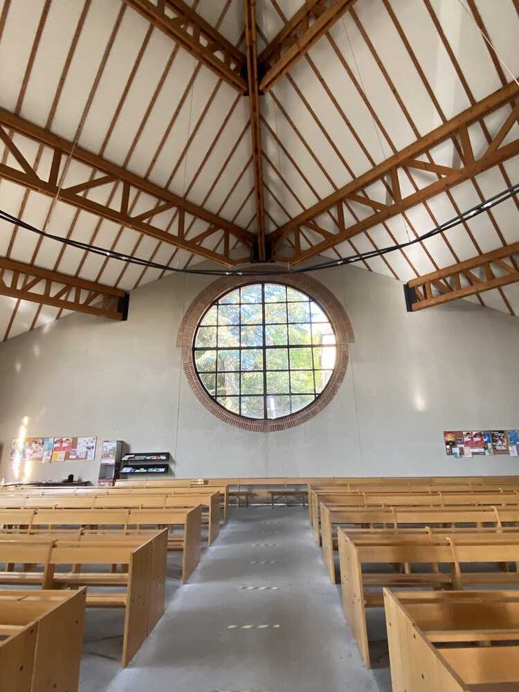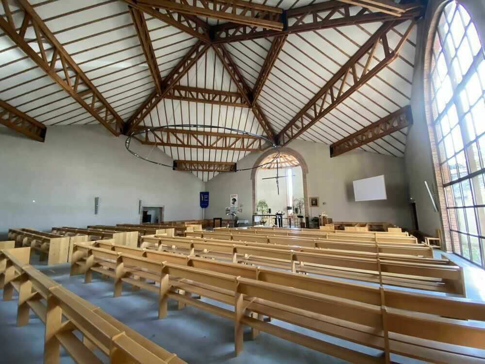 Le 17 janvier 1988, le nouvel enclos paroissial est inauguré. Il se compose d’une église de plan carré à laquelle on accède par un porche hors-œuvre et d’un bâtiment paroissial comprenant une chapelle de semaine, une sacristie, deux salles de réunion. Les trois bâtiments s’organisent autour d’un patio triangulaire.