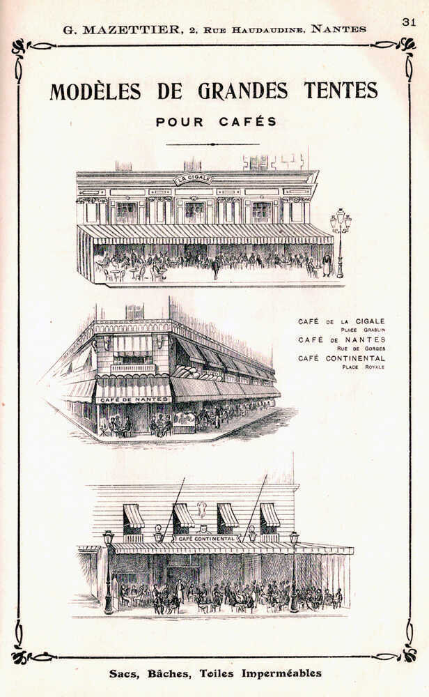 L’entreprise Mazettier apparaît successivement sous le nom de Louis Lion en 1895, Ch. Sorin (employé de Lion), Sorin et Mazettier en 1907, Établissements Gustave Mazettier en 1911, Société nantaise de toiles, bâches et vêtements imperméables en 1923, Cauvin-Yvose en 1937.