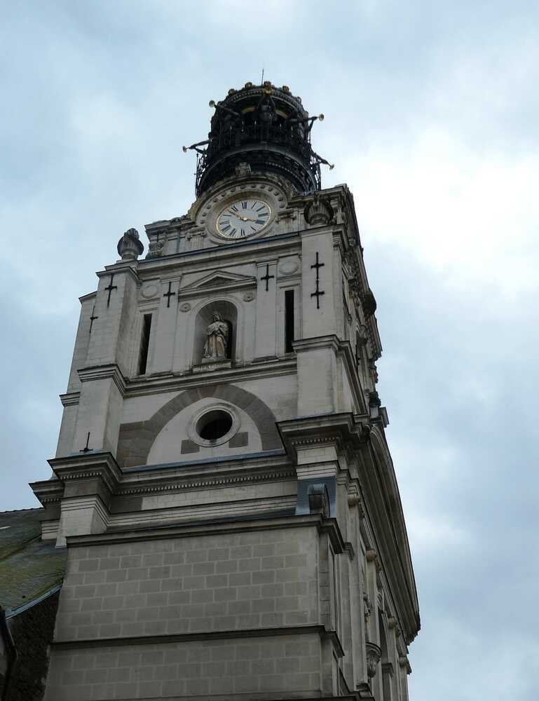 Jusqu’en 1860, l’église était surmontée d’un simple dôme. Les 23 tirants assurent maintenant la solidité du beffroi qui intègre l’ancien bourdon du Bouffay pesant 8 096 kg.