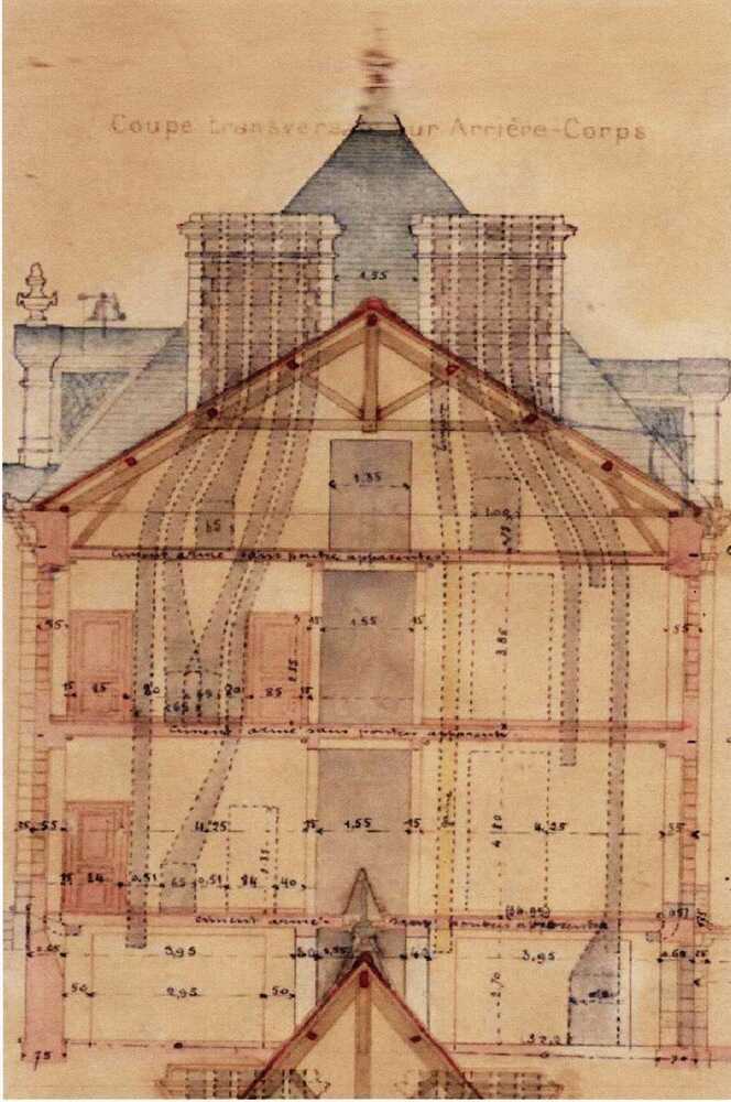Conduits de fumée jusqu’à la souche, détail du plan de coupe transversale des bureaux du service des eaux