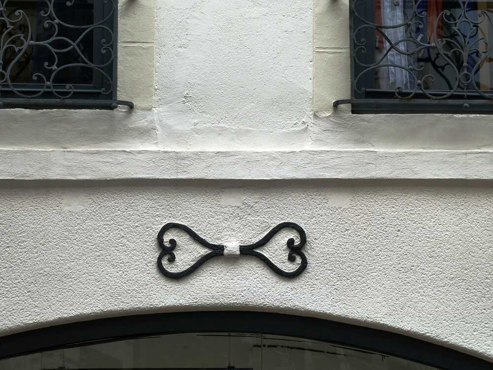 Ancre de façade mise en valeur lors du ravalement, constituée de deux « moustaches » en miroir. Elle peut aussi évoquer un double cœur.