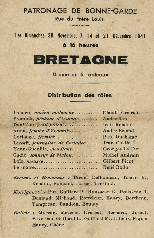 Malgré l’occupation, il se passe des choses à Bonne Garde. L’on y joue en 1941 « Bretagne », un drame en six tableaux. Les jeunes viennent jouer au ping-pong pour passer du bon temps, l’accueil des enfants le jeudi est maintenu, le cinéma rouvre ses portes en octobre 1942, etc. Le plus étonnant est le lancement par l’association de la construction d’un gymnase inauguré en 1942.