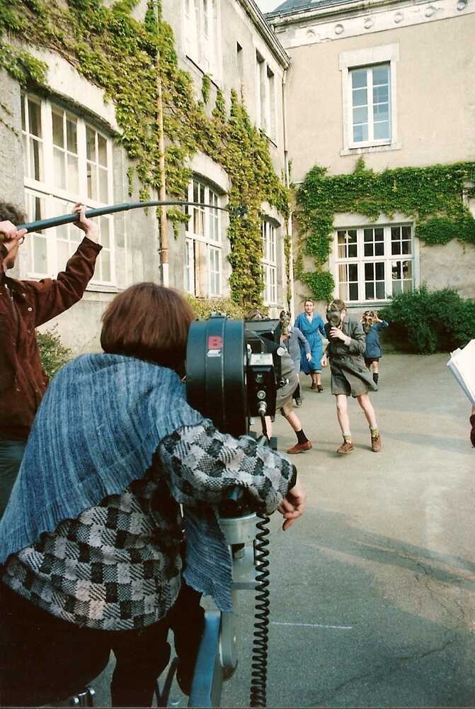 Agnès Varda sur le tournage du film « Jacquot de Nantes » à la classe ancienne de la rue des Réformes