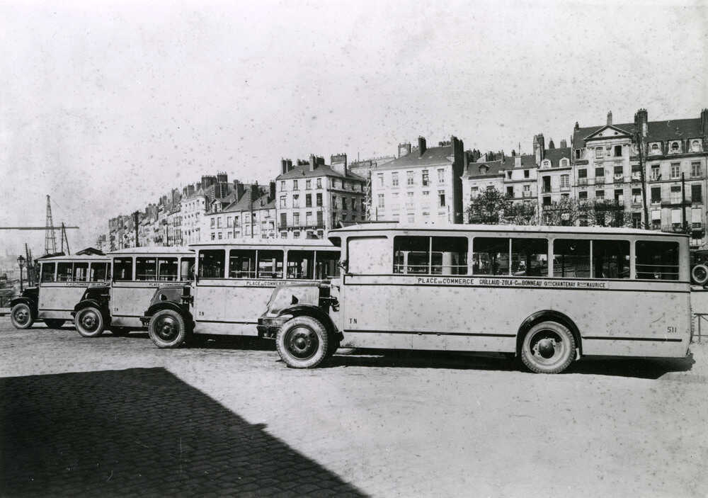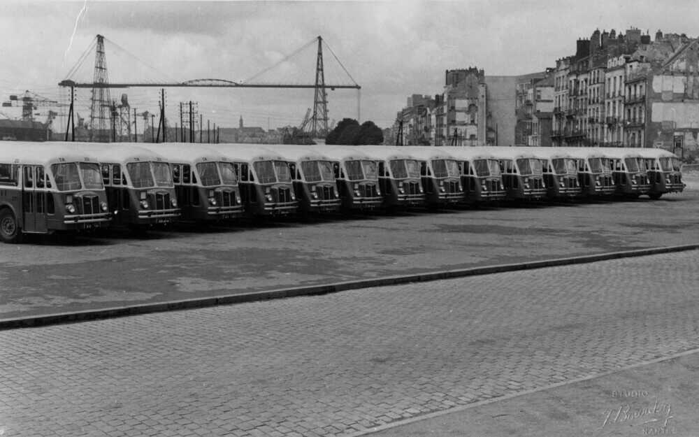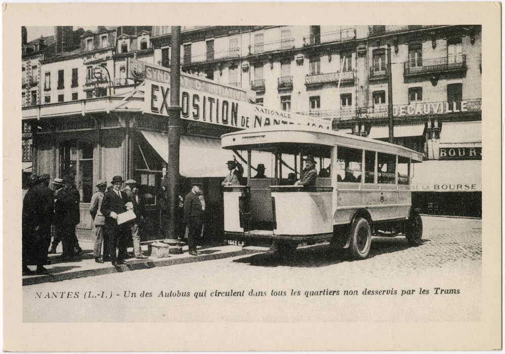 Dans les années 1920, l’autobus apparaît comme un moyen de transport moderne et d’utilisation plus souple que le tramway auquel il sert d’appoint. En 1924, la CTN, Compagnie des tramways de Nantes, ouvre une première ligne de bus de la place du Commerce au Champ-de-Mars où se déroule l’Exposition nationale. Ce sont des autobus Schneider, à plateforme arrière comme les bus parisiens. Le parc d’autobus ne cesse alors de grandir pour se substituer totalement au tramway en 1958.
