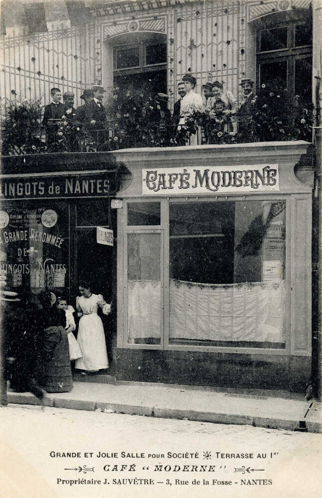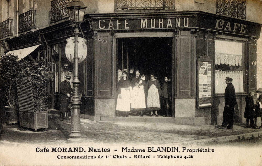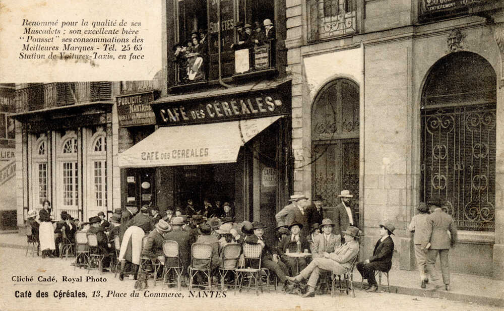 Le café est une possibilité d’échanges, à proximité du travail. Dans les années 1900, l’embauche des manutentionnaires sur le port se fait dans les buvettes tenues par les femmes des contremaîtres. À la sortie des usines, aux Chantiers, aux Batignolles, les verres alignés sur le comptoir attendent les ouvriers plus ou moins pressés qui régleront la note globalement quand ils percevront leur quinzaine ou leur mois. Les bistrots foisonnent autour des marchés (place Viarme), autour des foires (rue de Richebourg pour le cours Saint-Pierre), sur les quais, autour des gares (café des Deux Gares, celle de l’Anjou et celle d’Orléans).
