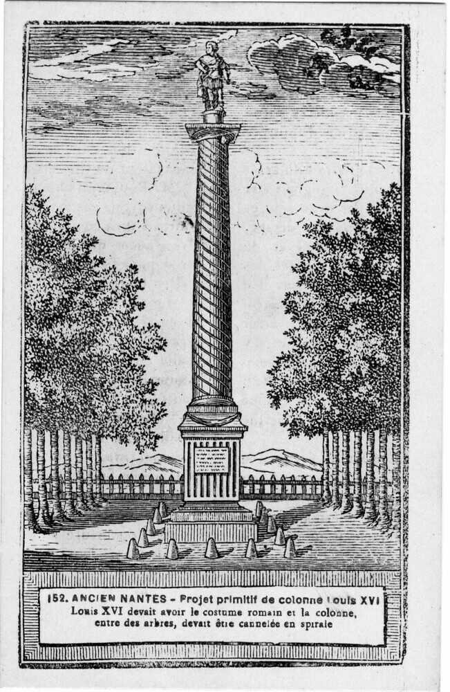 Nantes est une des rares communes, et la seule ville à posséder un monument dédié à Louis XVI. À la fin de l’année 1788, l’architecte voyer Mathurin Crucy, à la tête d’un groupe de confrères, propose d’élever, sur la place d’Armes, entre les cours Saint-Pierre et Saint-André, un monument en l’honneur du roi.