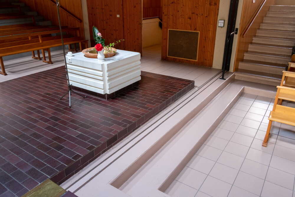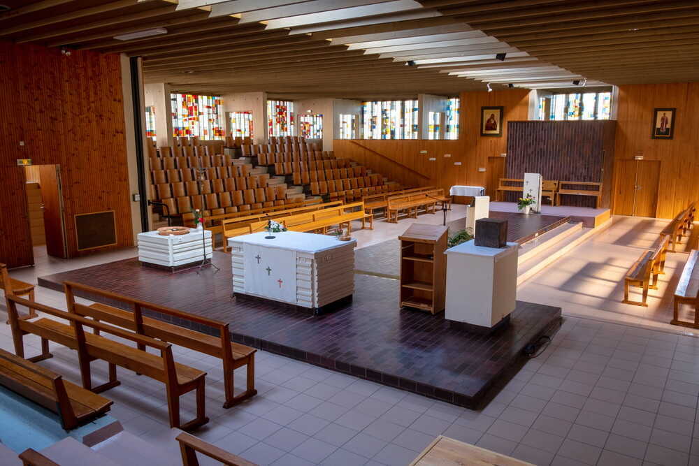 Lieu de culte qui se veut œcuménique, l’église est également conçue pour accueillir des fêtes ou rencontres laïques. La salle ayant été pensée pour sa polyvalence, une cloison mobile est aménagée pour isoler l'autel.