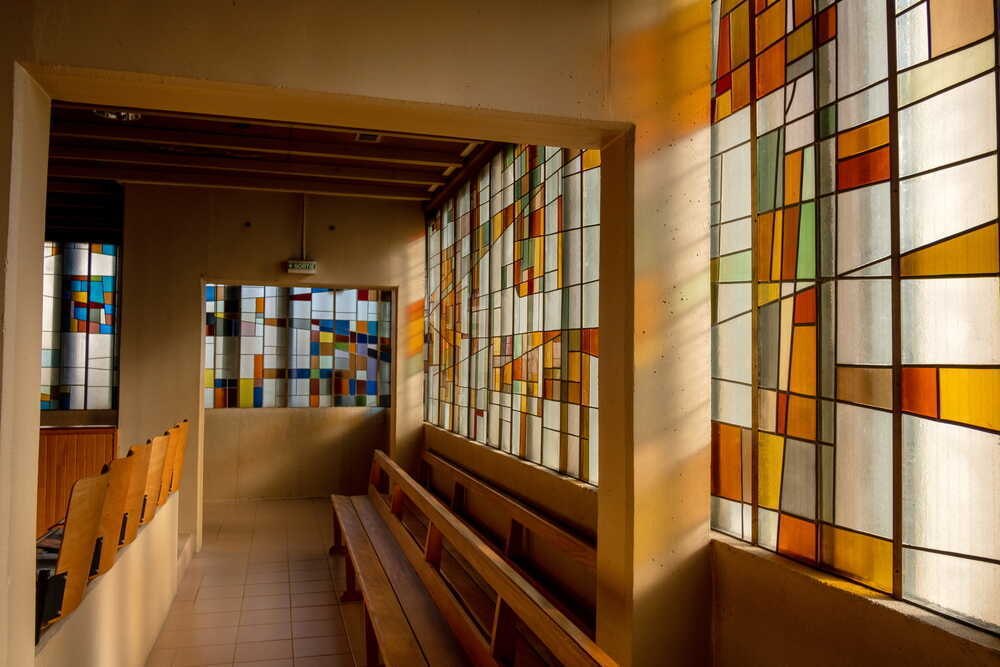 Influencée par la liturgie de Vatican II, l’église aux formes épurées sans signe extérieur ostentatoire, s’inscrit dans la vie de la cité.