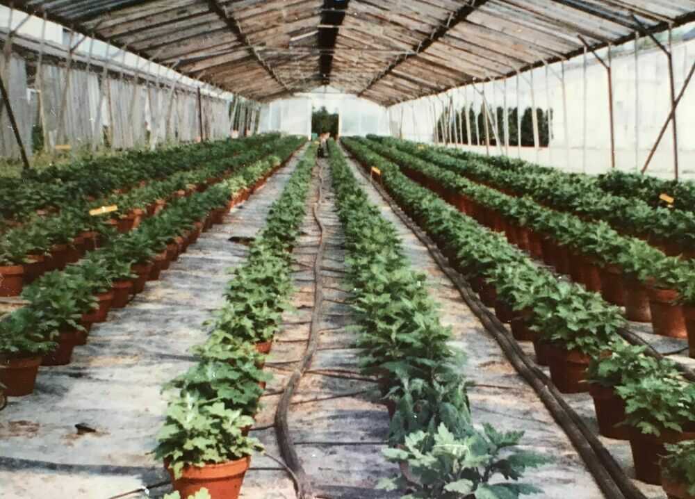 En 1970, l’établissement d’Hubert Thoby s’étend sur environ 1,5 hectares au cœur du Vieux-Doulon. La moitié de la surface est occupée par des serres et dans l’autre moitié, les plantes sont en pleine terre.