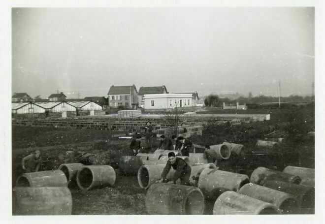 Puis, ils construisent les premières serres, des hangars, une chaufferie avec sa haute cheminée.