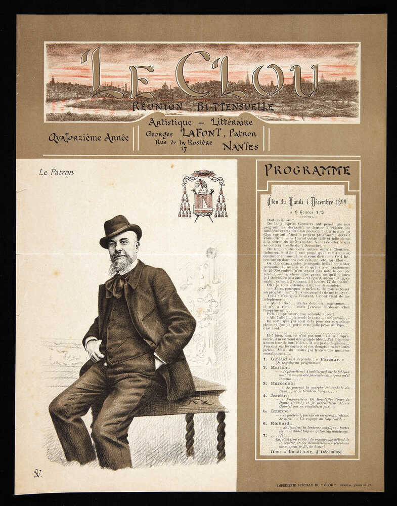 Architecte, élu républicain, fondateur de la société artistique et littéraire le Clou, président du Comité des fêtes, Georges Lafont est une figure représentative de Nantes à la Belle époque. Son portrait permet d’envisager de nombreuses facettes de la vie nantaise alors.