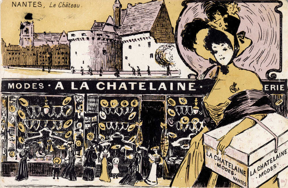 Lieux de passage très fréquentés, les galeries couvertes sont remplies de boutiques aux tailles variées dont les vitrines laissent entrevoir une multitude d’objets. Dans les années 1830-1840, les magasins dits de nouveautés font leur apparition. Il s’agit de boutiques plus spacieuses où se vendent principalement du linge, des articles de toilettes raffinés réservés à une certaine bourgeoisie et un large choix d’objets du quotidien. À Nantes, il existe de nombreux magasins de nouveautés situés principalement dans le quartier Graslin-Commerces.