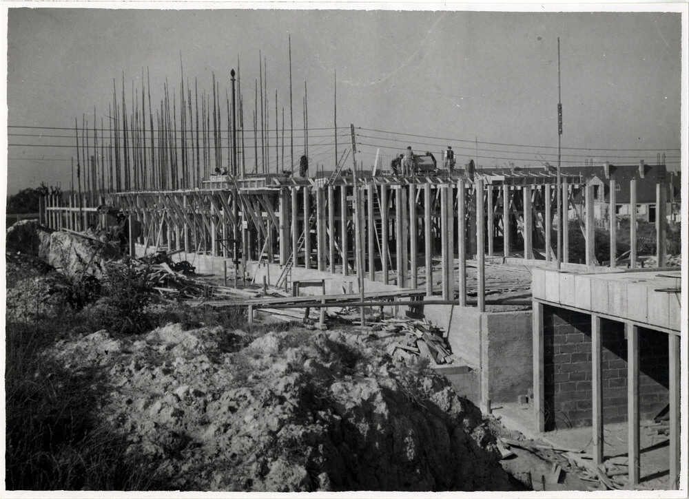 La première pierre est posée en 1952 et l’école élémentaire ouvre ses portes à la rentrée de 1953. L’essentiel du chantier de l’ensemble du groupe scolaire est achevé en 1954, même si les travaux se poursuivent jusqu’en 1956 avec certains retards.