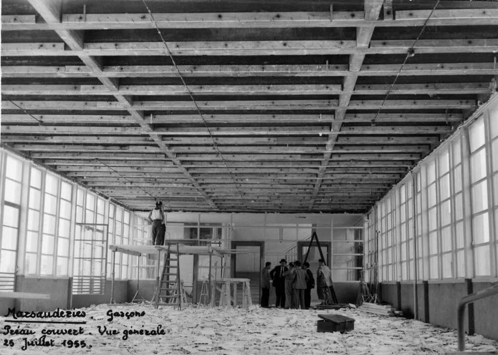 En juin 1957, de nouvelles classes sont aménagées, accompagnées par la construction de préaux-vestiaires. Malgré la pression des parents d’élèves organisés en amicale depuis 1954, le gymnase de l’école situé entre les cours et le bâtiment de la salle des fêtes, ne sera livré qu’en 1963.