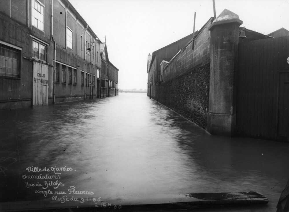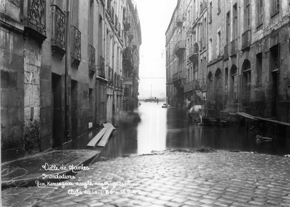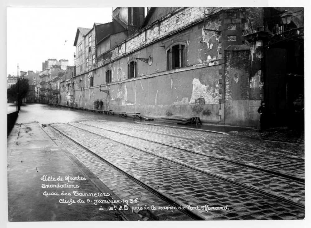 Inondations de janvier 1936, angle du quai Malakoff et de la rue Cornulier