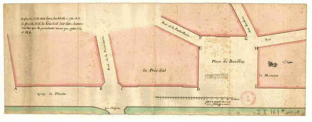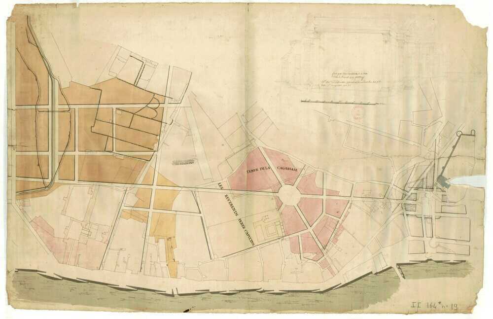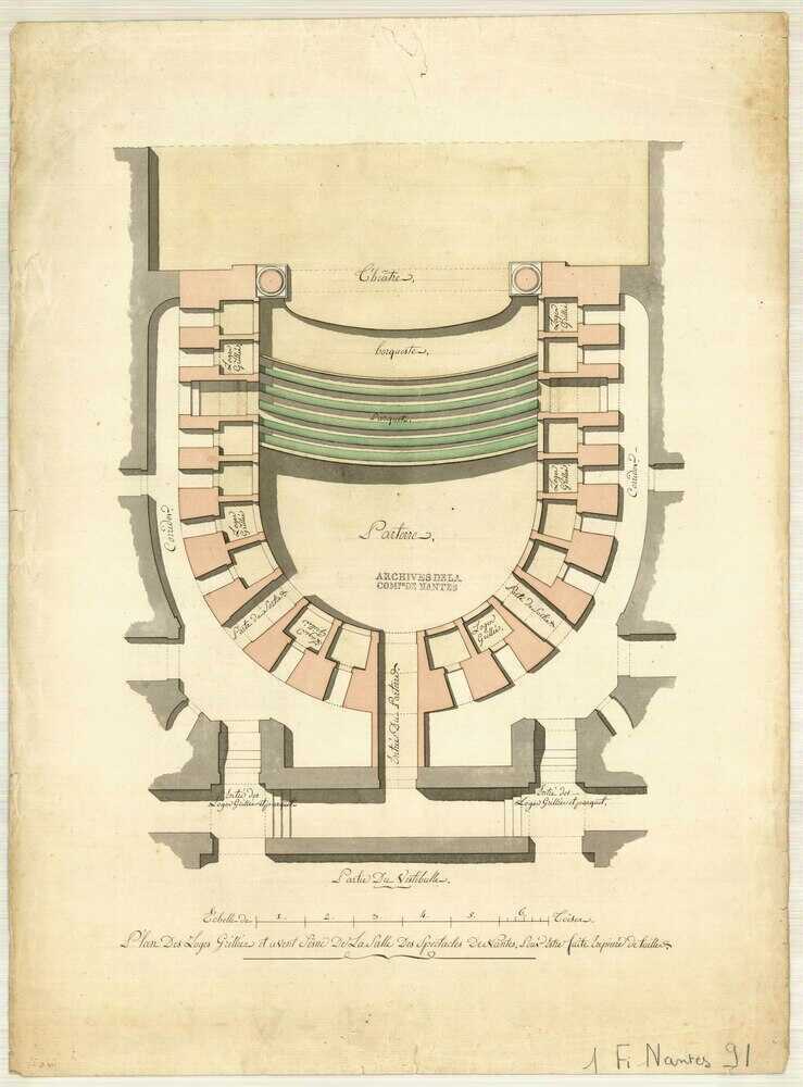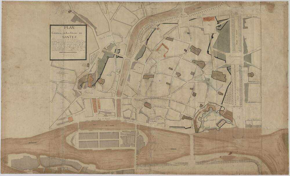 Entre 1754 et 1755, l’architecte Pierre Vigné de Vigny élabore un premier plan général d’embellissement pour Nantes. Ce projet est commandé par le duc d’Aiguillon, qui de par ses charges de lieutenant général de la ville et commandant en chef en Bretagne, représente le pouvoir royal en province. Les autorités municipales nantaises se voient ici imposer un projet urbain voulu par l’État. À partir de 1760, Jean-Baptiste Ceineray, nommé architecte voyer de Nantes, reprend le plan de Vigné de Vigny pour mieux l’adapter aux contraintes locales et le mettre en œuvre. En effet, Vigné de Vigny avait travaillé sur un fonds de plan peu fiable et, ne vivant pas à Nantes, il était trop peu informé sur les particularités de la ville. De son côté, Ceineray connaît bien cette cité qu’il habite depuis huit ans. Ainsi, le plan qu’il dessine conserve certaines idées de Vigné de Vigny mais se montre aussi plus ambitieux : l’architecte propose de détruire une partie de l’enceinte médiévale afin de faire de Nantes une ville moderne et ouverte sur ses faubourgs. Le projet d’urbanisation de l’île Gloriette pensée par Vigné de Vigny est abandonné pour laisser place à de nouvelles propositions : création de deux promenades publiques aux abords de la cathédrale, aménagement du front de Loire donnant sur le bras de la Bourse, canalisation de l’Erdre, etc. Toutefois, ces propositions n’ont pas été uniquement formulées par Ceineray. Certaines d’entre elles émanent d’autres acteurs concernés par ce projet. Le plan de Ceineray, dressé en 1761, est finalement approuvé par le Conseil d’État du roi en 1766.