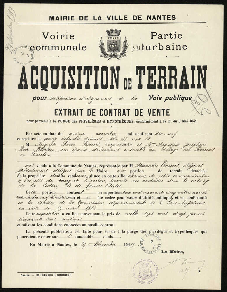 Durant la même période, en 1924, Auguste Praud demande à la Ville l’autorisation de lotir une parcelle qu’il possède face au Grand-Blottereau ainsi qu’une parcelle le long du boulevard Penaud entre les Perrines et la gare. Après l’annexion de Doulon par Nantes, la création du nouveau boulevard vise à relier facilement Nantes, Toutes-Aides et le bourg de Doulon, les terrains constructibles prennent une nouvelle valeur. Auguste Praud est le premier à profiter de l’opportunité que donne la création du boulevard Penaud de désengorger le quartier de Toutes-Aides qui depuis la seconde moitié du 19e siècle était le plus peuplé de Doulon. De cette opération de lotissement, naissent deux rues : l’avenue Praud et la rue Pelletier d’Oisy. Tout autour de la parcelle, dix-sept lots sont créés.