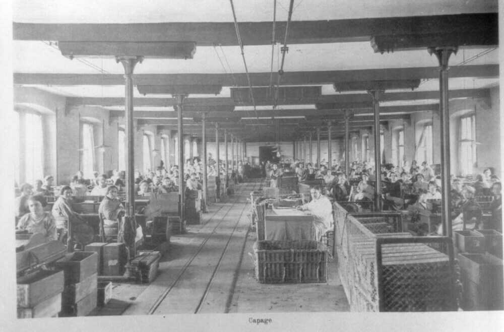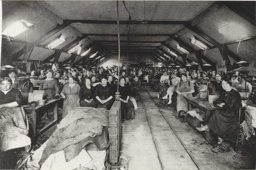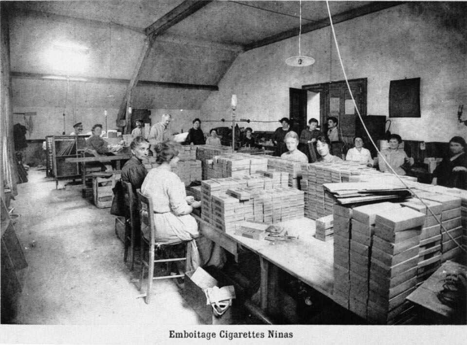 Main d'oeuvre féminine dans un atelier de la manufacture des tabacs