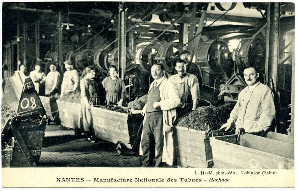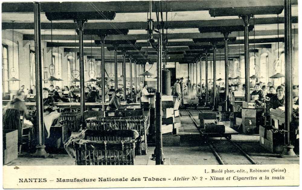 Nantes, qui a recueilli et permis de collectionner les plantes exotiques qui constituent le décor favori des fumoirs, accueille justement, à partir de 1857 sous une forme précaire, et à partir de 1865 sous une forme pérenne, une Manufacture des tabacs dédiée à la production des cigares et cigarillos ainsi qu’à celle du tabac haché.
