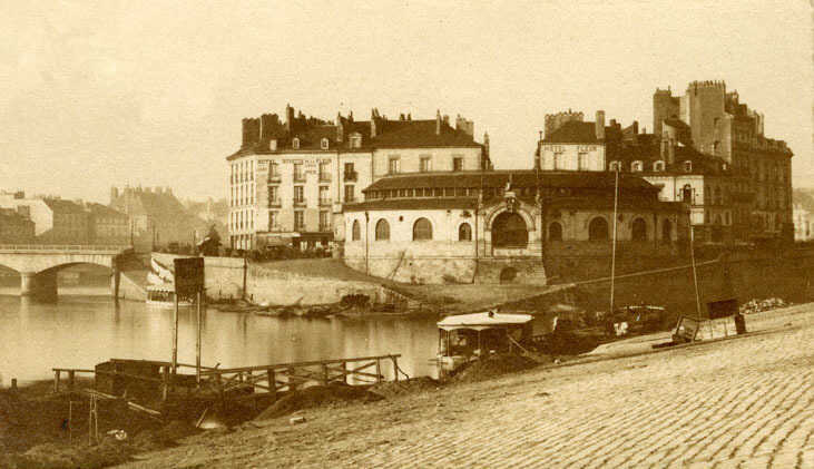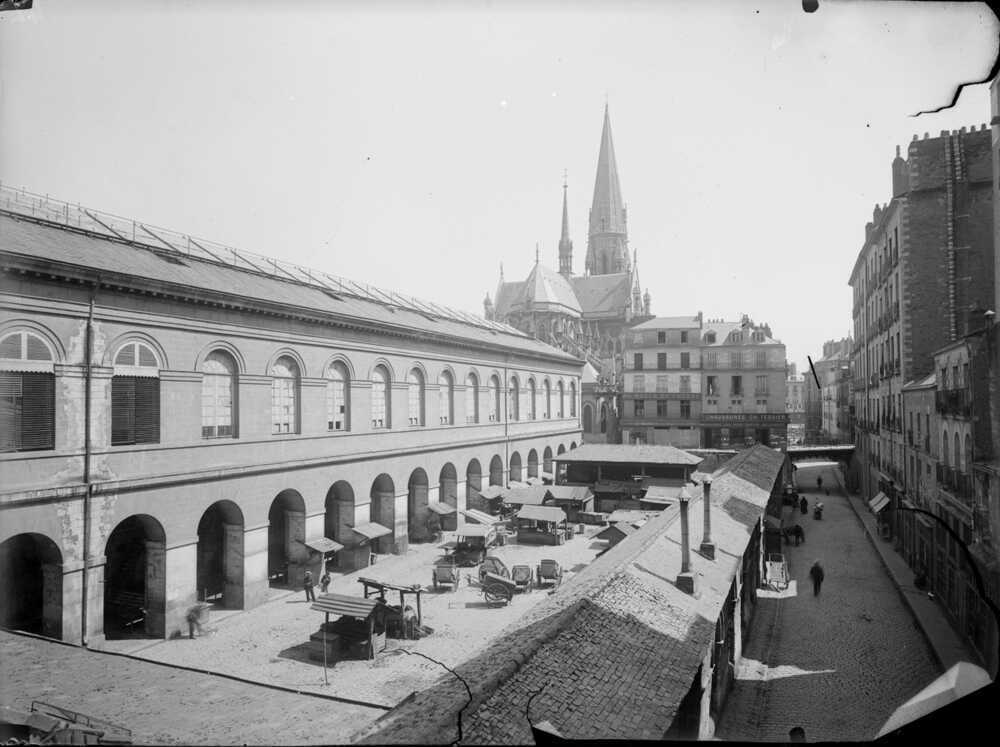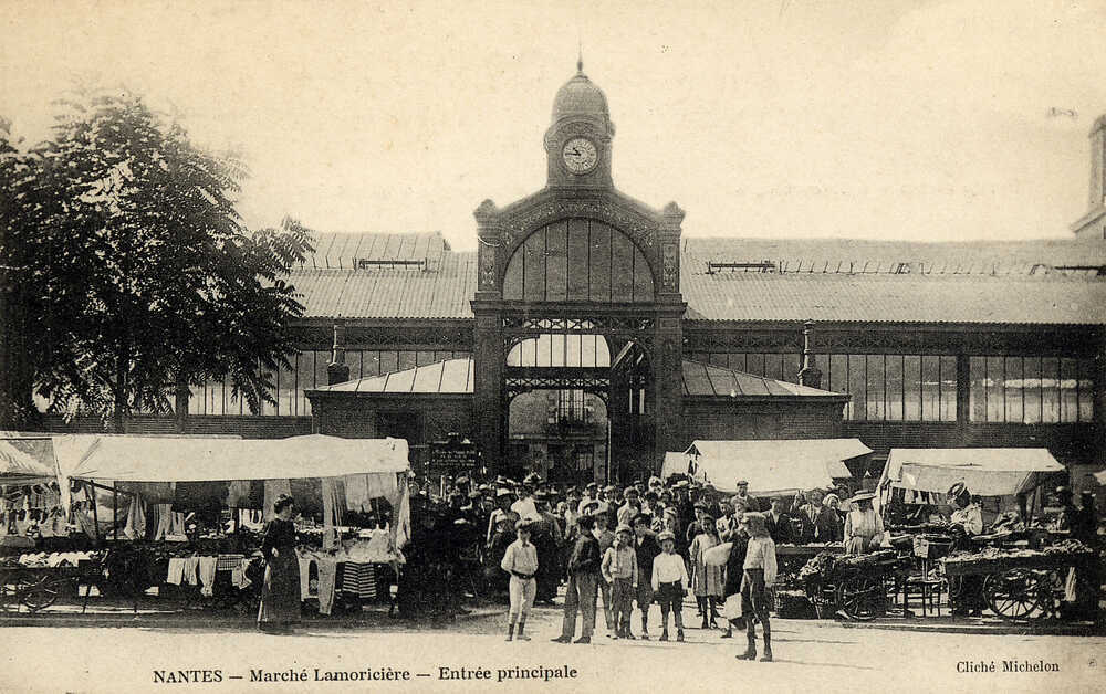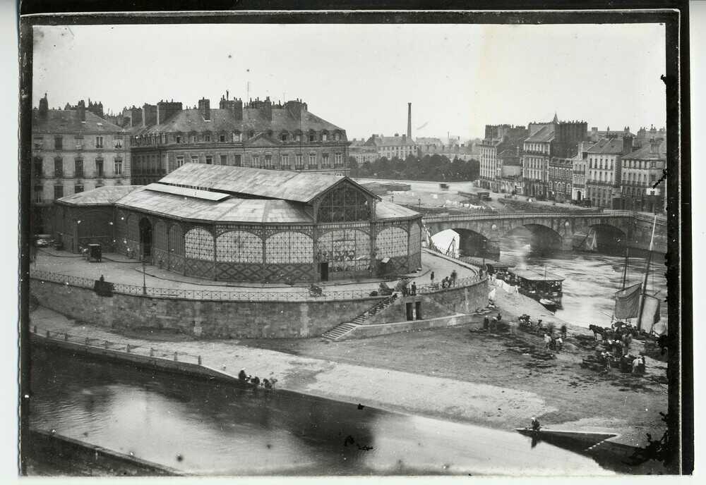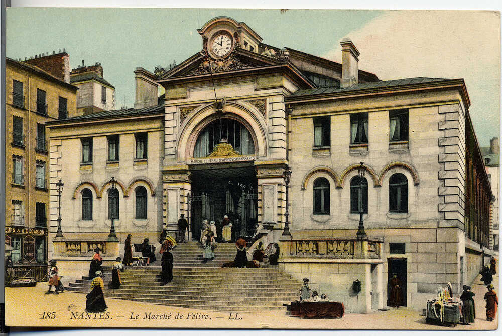 Le remaniement des marchés se poursuit au cours du 19e siècle au rythme des aménagements urbains : en 1823, les halles des boucheries sont détruites lors de la canalisation de l’Erdre et les abattoirs de Talensac inaugurés en 1829 ; des petits marchés illégalement établis sur plusieurs points de la ville sont regroupés place de la Monnaie ; d’autres sont déplacés pour libérer les places encombrées. Édifiée en 1808 et vite délabrée, la poissonnerie coiffant la pointe amont de l’île Feydeau est remplacée, en 1851-1853, par un bâtiment conçu par l’architecte voyer Henri Driollet. En janvier 1873 est inauguré le marché couvert de la Petite Hollande, à la pointe aval de l’île Feydeau. Un autre marché couvert, plus modeste, est construit en 1895 rue Lamoricière.