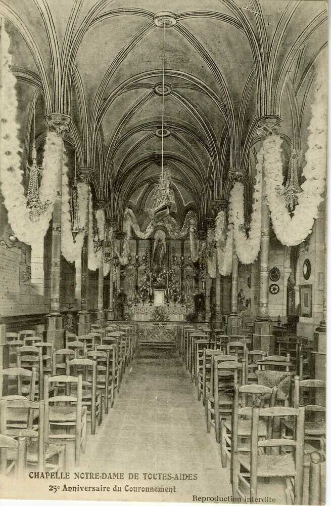 Au tournant des 19e et 20e siècles, Notre-Dame-de-Toutes-Aides fait l’objet d’une grande ferveur populaire. Les pèlerins affluent en nombre dans l’église ouverte en 1881. Parallèlement, la notoriété de ce sanctuaire suscite l’intérêt des marchands de souvenirs qui y voient un nouveau débouché pour leurs objets de piété.
