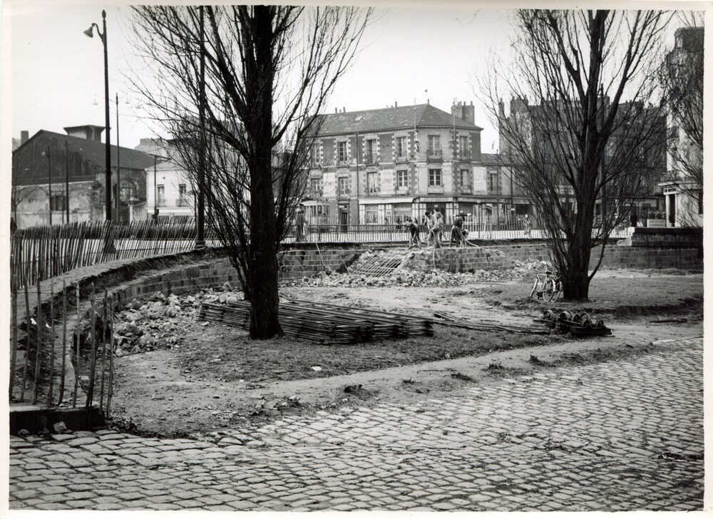 Le 28 novembre 1944, un concours d’idées est mis en place sous la présidence de M. Roux-Spitz, architecte des Monuments et Palais nationaux, chargé de la reconstruction de Nantes dans le cadre du Ministère de la Reconstruction et de l’Urbanisme. Le jury est composé du maire de la ville et de plusieurs élus, MM. Lepage, Philippot, Bâtard, Gosselin et Bourvéau, M. Soil, secrétaire général de la Ville, M. Vié, président de la société des Architectes, M. Polo, représentant la Chambre de Commerce, M. Stany-Gauthier, président de la commission des Sites et Monuments naturels, M. Simon, directeur de l’école des Beaux Arts, M. Esneau, conservateur des Propriétés communales et M. Bourcy, directeur général des travaux de la Ville.