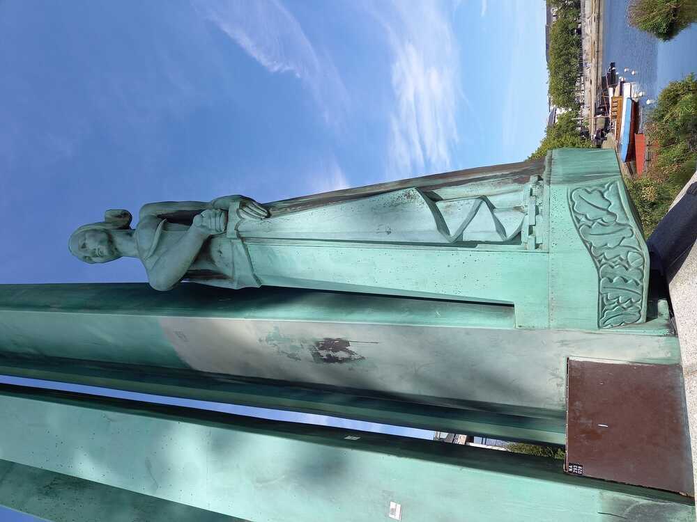 En décembre 1950, il est donc décidé de ramener le monument à son emplacement primitif soit au niveau de la cale basse du pont Morand ! Une nouvelle fois, M. Fradin doit modifier ses plans. Pour que le monument ne soit pas en soubassement par rapport au cour, on décide le remblaiement de l’ancienne cale à hauteur de la chaussée.