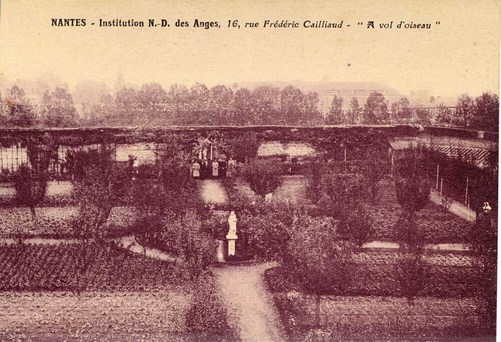 Du jardin des religieuses, il subsiste encore de hauts cèdres. Le passant, flânant dans les rues nantaises, remarquera sans doute le vieux mur du 102 rue d’Allonville et devinera qu’autrefois on y instruisait les jeunes filles tant la cour encore ombragée de tilleuls a gardé son aspect de cour de récréation.