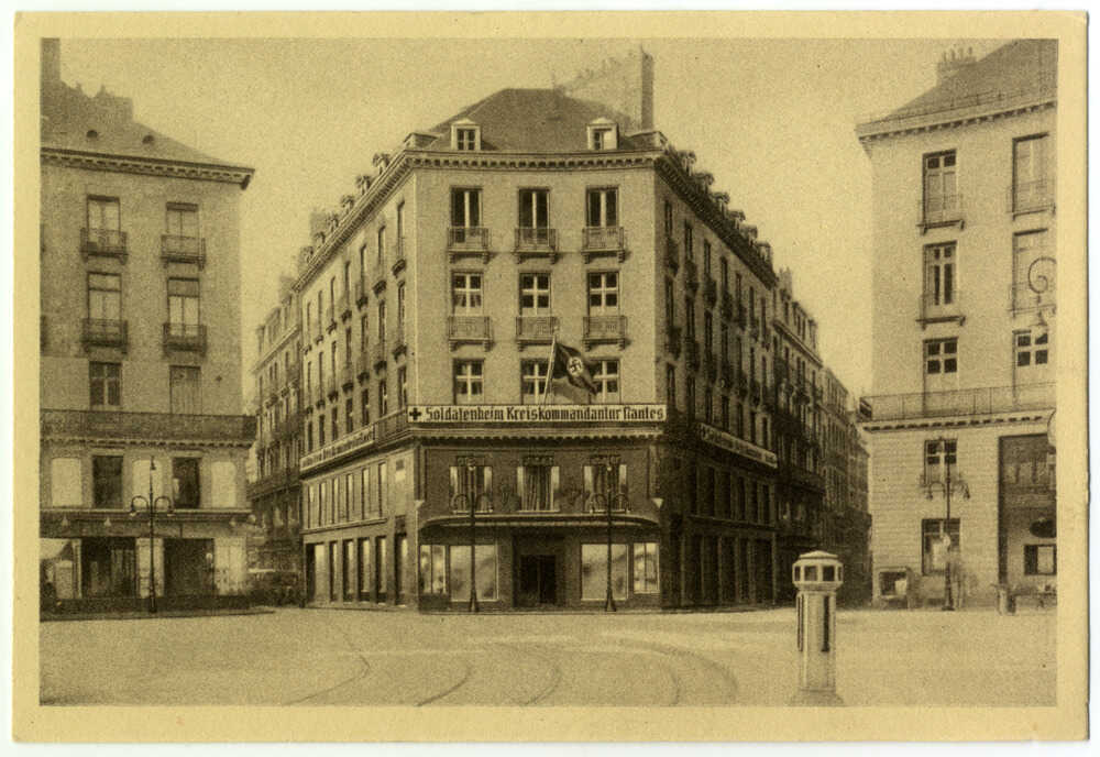 La place Royale traverse le temps, les diverses manifestations mais aussi les temps de guerre. Depuis l’armistice du 25 juin 1940, la Loire-Atlantique est placée sous l’autorité de l’armée allemande. L’ancien magasin Au Petit Paris, (actuel Crédit Mutuel) est occupé par la Soldatenheim, un foyer pour soldats, lieu officiel de détente des troupes de l’Occupation. Le 26 décembre 1940, Paul Bocq, Henri Adam et Marin Poirier lancent un engin explosif sur le bâtiment. Traqués, les trois résistants tentent de rejoindre l’Angleterre. Paul et Henri parviennent à s’échapper tandis que Marin Poirier est arrêté. Exécuté le 30 août 1941, il est le premier résistant Nantais à être fusillé.