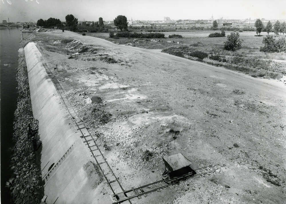 Lors de l’hiver 1945, 9,56 mètres d’eau sont enregistrés à la station de la Moutonnerie. Les nombreuses destructions occasionnées par les bombardements permettent de faire le rehaussement du quai sans tenir compte des désagréments pour les riverains.