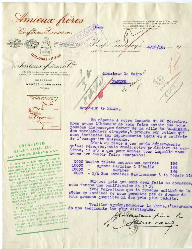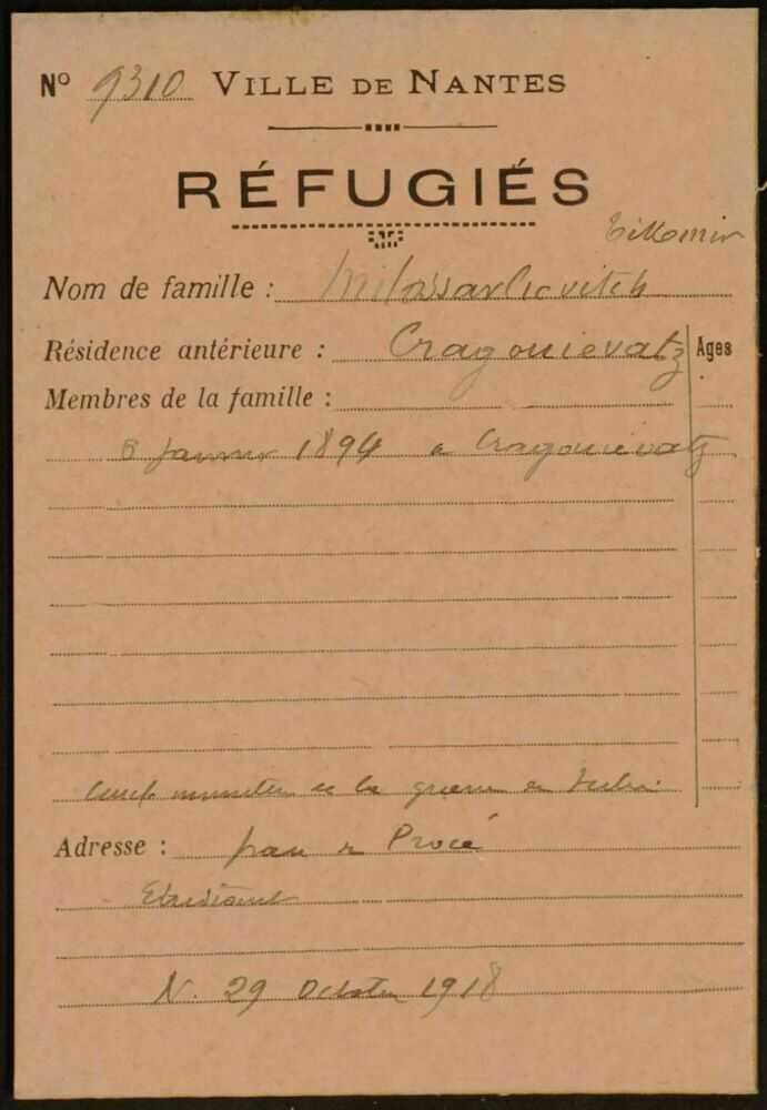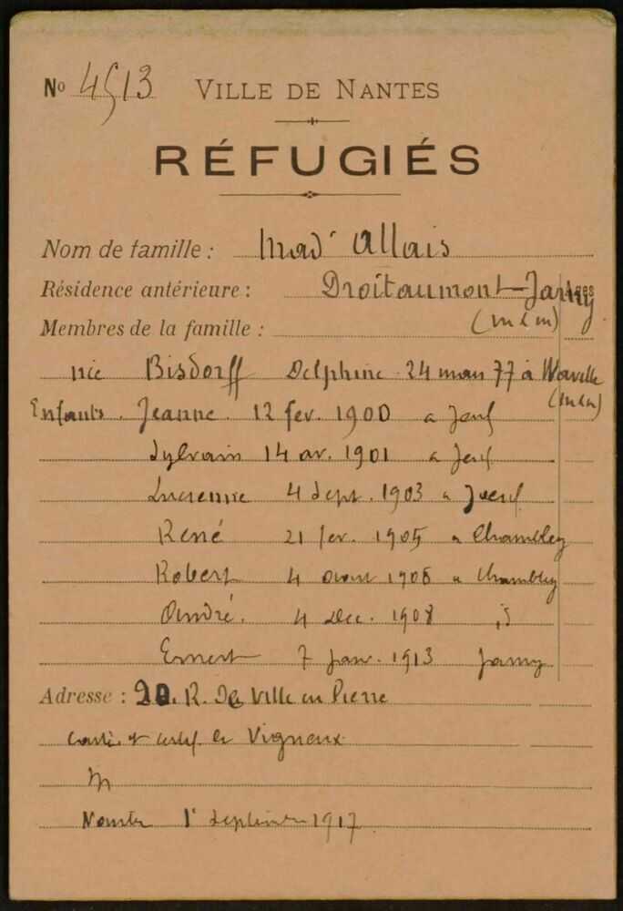 En même temps, elle mit en place un bureau spécial pour accueillir les propositions généreuses des Nantais de logements, d’offres de travail, de dons en nature, vêtements et objets mobiliers. Dès les premiers jours, ce bureau immatricula toutes les familles arrivant à Nantes avec un état civil.