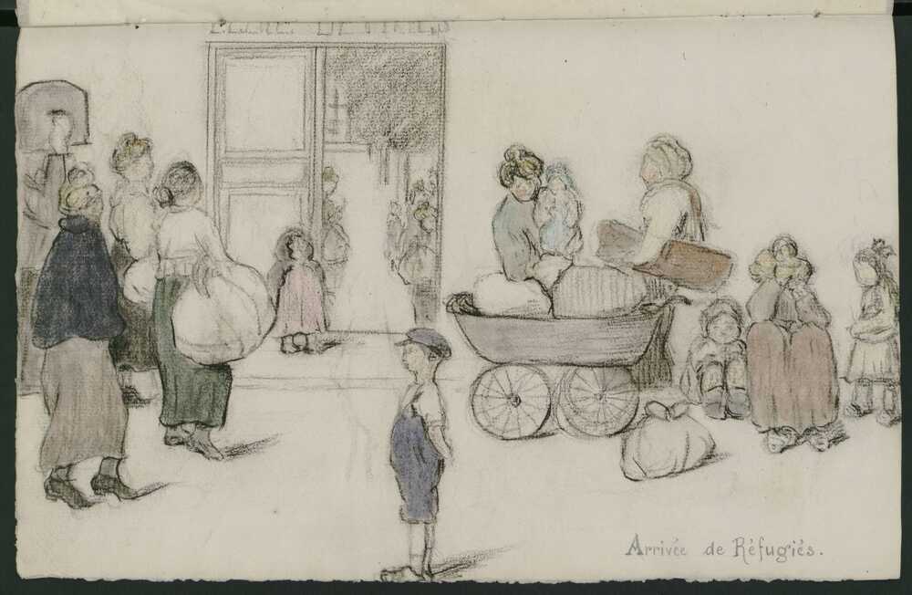 Les 250 premiers réfugiés fuyant les combats et l’occupation par l’armée allemande de la Belgique et des territoires du Nord de la France arrivèrent à la gare de Nantes dans la soirée du 26 août 1914. Ils furent bientôt suivis d’autres convois arrivant presque chaque jour durant le mois de septembre jusqu’à la mi-octobre. Le maire de Nantes, Paul Bellamy, estima que durant cette période 2500 réfugiés furent accueillis.