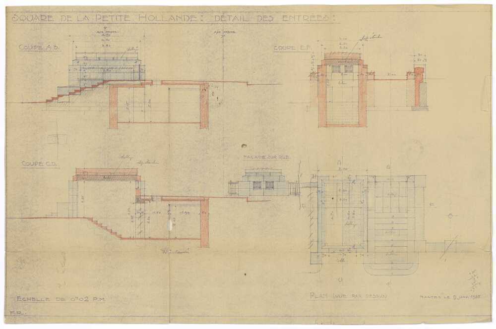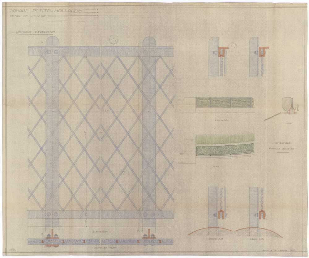 Plan et coupe du square de la Petite-Hollande