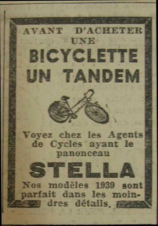 Déjà dans l’entre-deux guerres, vers 1930, l’entreprise Stella commence à équiper des coureurs amateurs régionaux, mixage de jeunes prometteurs et de vétérans confirmés. Son premier champion est Maurice L’Hôtellier, un jeune angevin qui dès 1930 remporte le circuit du Maine-et-Loire. Sur piste, il tient la dragée haute aux champions de l’époque Leduc et Pelissier. Suivront d’autres étoiles amateurs, pistards ou routiers : les frères Bautru, Georges Peuziat, Joseph Kergoff, Pierre Le Cam, Albert Goutal, les frères Allory et Le Goff, Serge Denjean qui par la suite s’installe comme fabricant de cadres et ouvre un magasin de vélos en bonnes relations avec Stella.