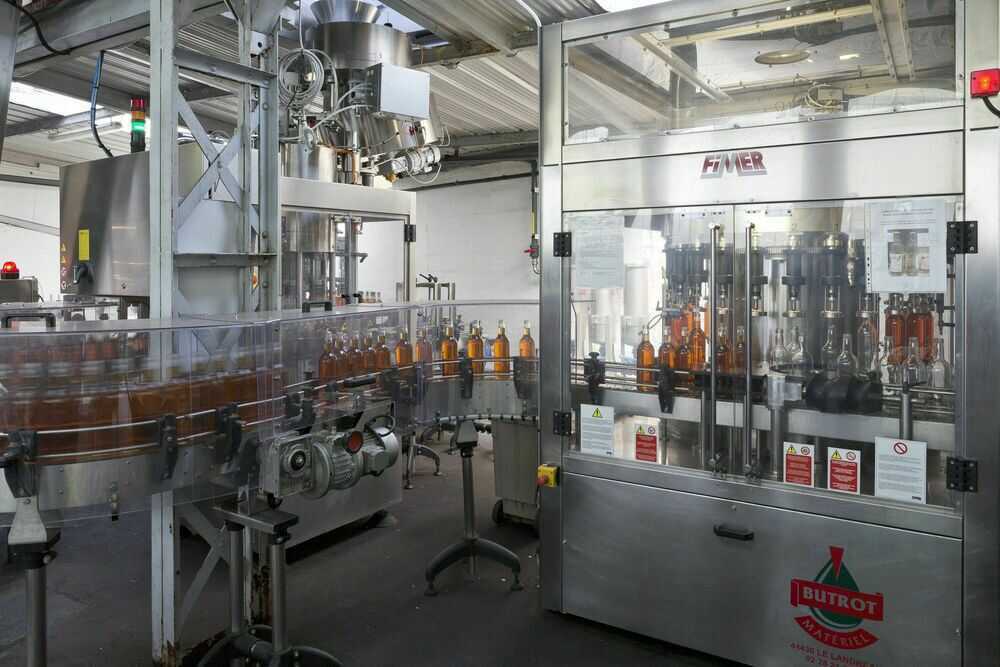 Ligne verre, mise en palette des bouteilles à la vinaigrerie Caroff